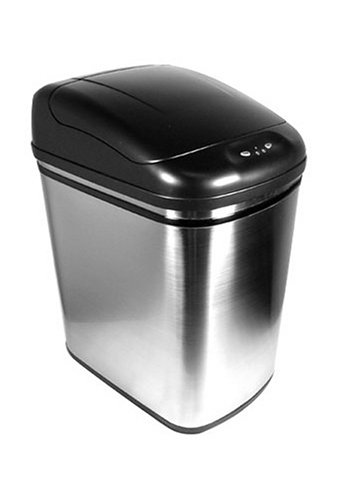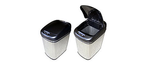 We saw this model of electric eye auto-opening trash can at our Dentist's office. After the 3rd or 4th visit I knew I wanted one. His was probably 10/12/14 gallons, we opted for this one for the bathroom. It fits perfectly and actually holds more than the SimpleLife model we had there. Added functionality is an OPEN button which will hold the lid open until you press the CLOSE button and a retaining ring to hold the trash bag securely. Nice touches. A little pricey for a trash can but Amazon had a great price.
